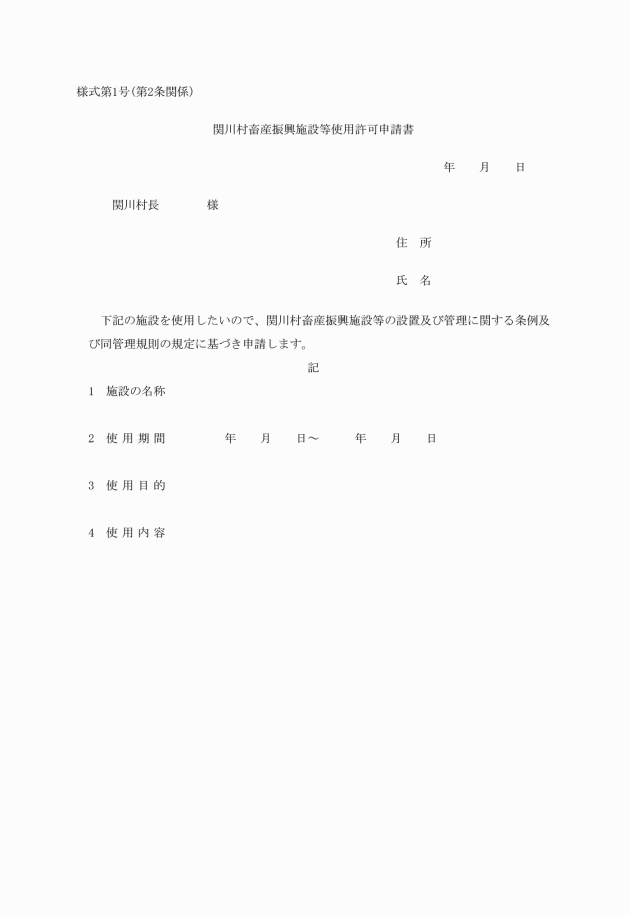 第2条 施設を使用しようとする者は、村長に使用許可申請書を提出し、許可を得なければならない。