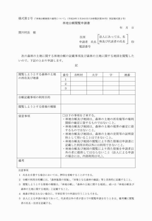 閲覧しようとする森林の土地の所在及び地番が記載されており、その土地が本村に所在していること。