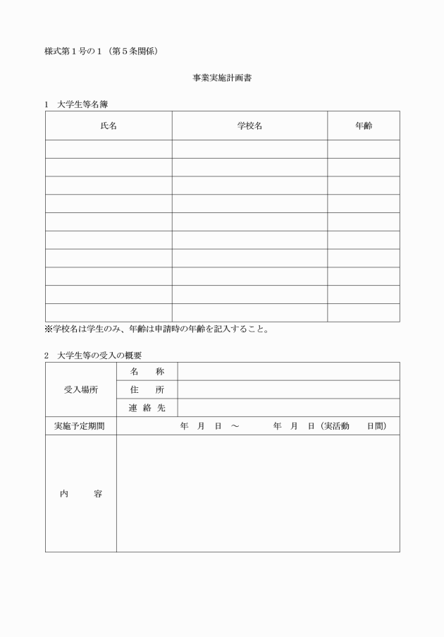 第1条 この要綱は、地域の活性化を目的として、コミュニティ又は集落(以下「集落等」という。)が、大学生等を受入して事業を行う際に要する経費に対し、予算の範囲内で補助金を交付するものとし、その交付に関しては、関川村補助金等交付規則(昭和40年関川村規則第13号。以下「規則」という。)に定めるもののほか、この要綱に定めるところによる。
